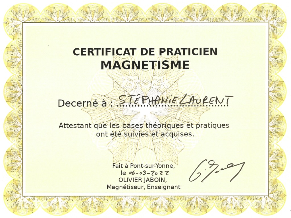 J’ai obtenu la certification de Spécialiste en Shiatsu en 2020 par le Syndicat Professionnel du Shiatsu.