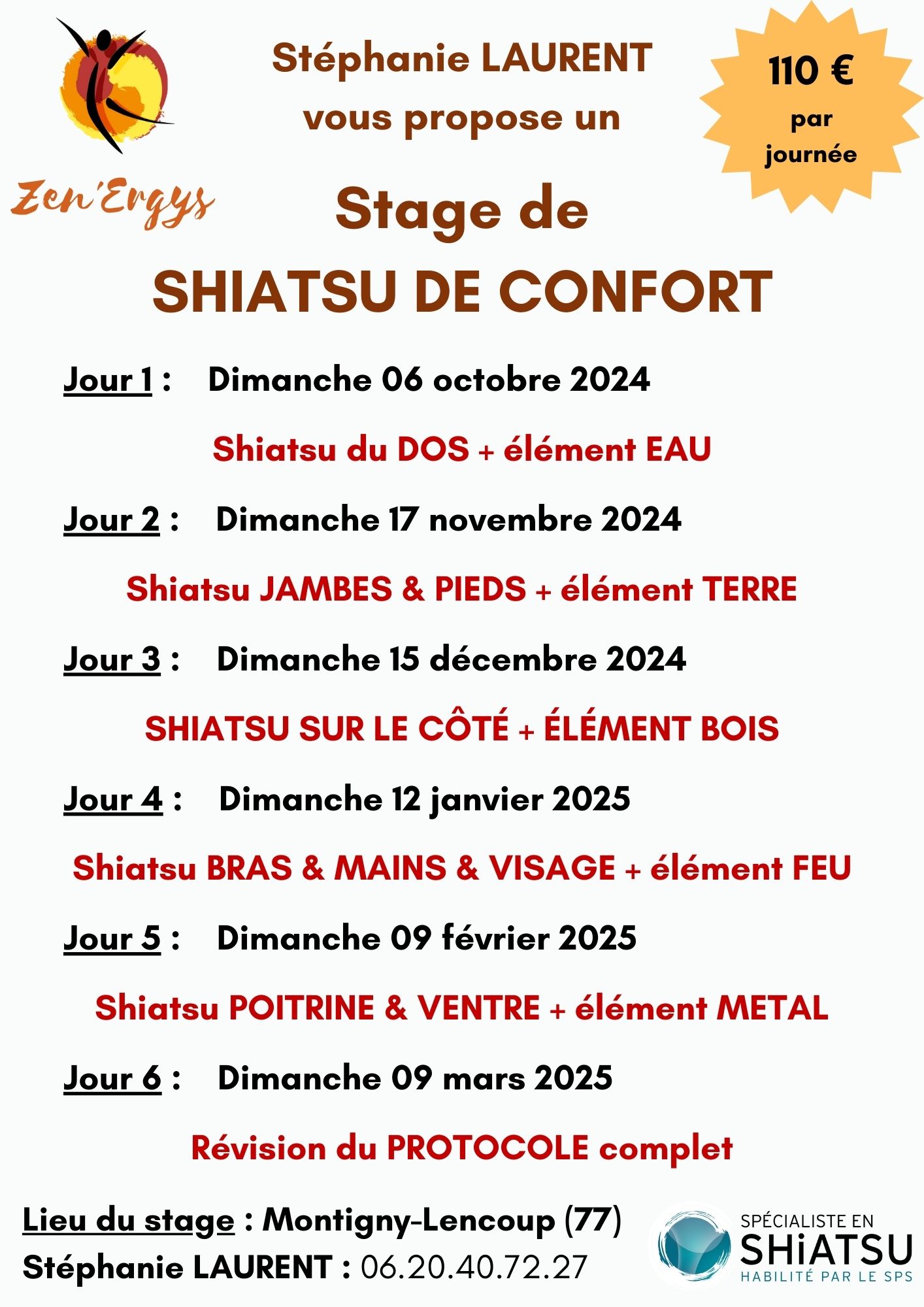Stage Shiatsu de confort 2024 / 2025